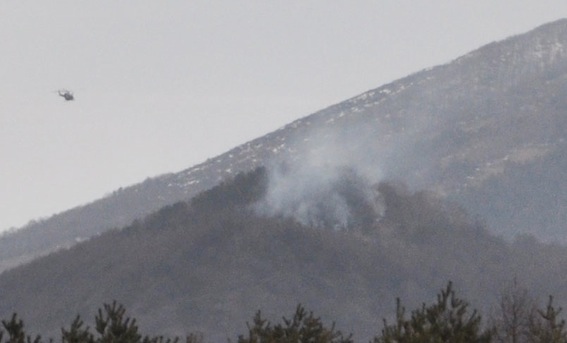 石尊山の山頂で、4月19日12時40分ごろ火災が発生した。山頂で佐久広域連合消防本部の消防隊員らが消火活動にあたり、県消防防災ヘリも上空から散水し、16時10分に鎮火した。下草や立ち木など2.25haを焼いた。火災の原因について佐久広域連合消防本部は「調査中」としたが、頂上付近で使用された携帯用ガスコンロの火が風にあおられ燃え広がったという報道がある。