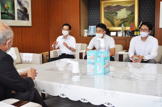 軽井沢町商工会青年部(部員28人)は9月3日、町内小中学校の新型コロナウイルス感染症対策に役立ててもらおうと、アルコール消毒液の自動噴霧器24台を町に寄贈した。毎年実施している講習会が中止になるなど、青年部としての活動ができない中、部内で相談し年会費を町のために使うことに決めた。髙橋檀部長は「部員には子育て世代が多い。学校に無くて困っているものを贈る方向で意見がまとまった」と話した。