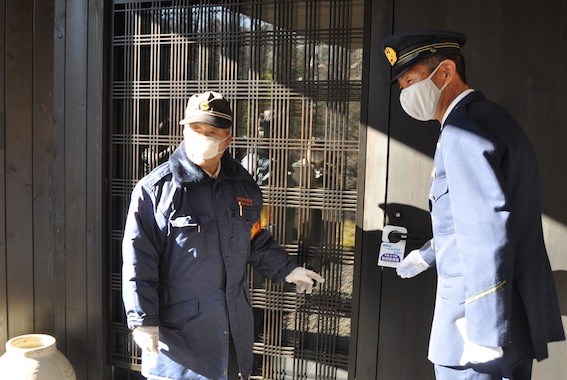 軽井沢町別荘管理防犯組合と軽井沢警察署は11月24日から12月7日まで、別荘一斉防犯診断を行った。空き巣被害などの防止のため、組合員、署員のべ約290人が、戸締まりなどを確認しながら約12000軒の別荘を回った。初日の出発式で、同組合長の石川幸男さんは、「(新型コロナの影響で)今年は別荘を利用しなかった人も多い。特に注意して見回りたい」と話していた。