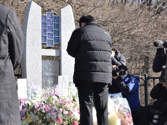 大学生ら15人が死亡し、26人が負傷した2016年1月のスキーバス転落事故から5年を迎えた1月15日、事故現場の慰霊碑「祈りの碑」に、遺族や関係者ら多くの人が献花に訪れ犠牲者を悼んだ。