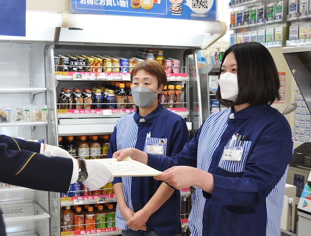 架空請求詐欺被害に遭いそうだった来店客の被害を防いだとして1月14日、ローソン軽井沢東店に軽井沢警察署長から感謝状が贈られた。昨年12月20日、来店した70代女性が、30万円分の電子マネーを購入しようとしたため従業員の中山こずえさんが詐欺を疑い、警察への相談を促し被害を防いだ。中山さんは「あまりに高額だったためお声がけした。詐欺かどうか判断は難しいが、今後も気を付けて見ていきたい」。同店が被害防止で表彰されるのは3度目。2016年には長野県警の「あなたの街のサギ防止優良店」に認定されている。