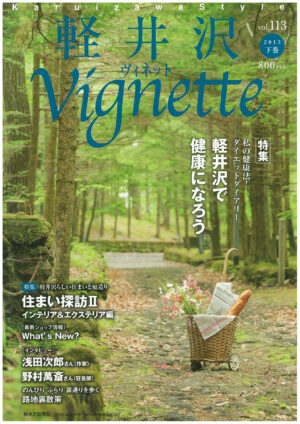 vignette(ヴィネット)は英語で「言葉で描写する」「場面をとらえる」などの意味があります。軽井沢の自然、文化、歴史、別荘ライフの様々なシーンをヴィネットしています。ページをめくると、高原の爽やかな緑の風が薫るような、そんな”高原誌”です。著名人の別荘にお邪魔する「別荘訪問」や「別荘の食卓」など軽井沢の別荘ライフをテーマに軽井沢の衣食住を様々な切り口で紹介しています。