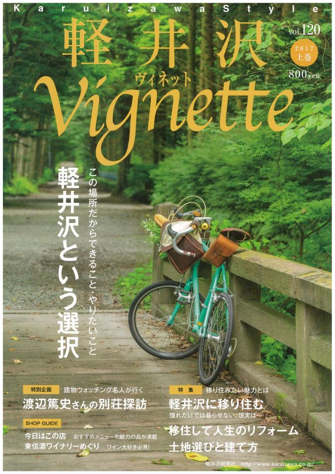 vignette(ヴィネット)は英語で「言葉で描写する」「場面をとらえる」などの意味があります。軽井沢の自然、文化、歴史、別荘ライフの様々なシーンをヴィネットしています。ページをめくると、高原の爽やかな緑の風が薫るような、そんな”高原誌”です。著名人の別荘にお邪魔する「別荘訪問」や「別荘の食卓」など軽井沢の別荘ライフをテーマに軽井沢の衣食住を様々な切り口で紹介しています。