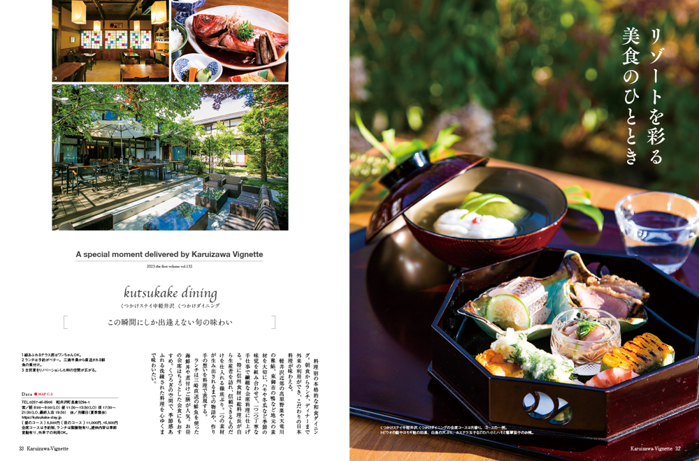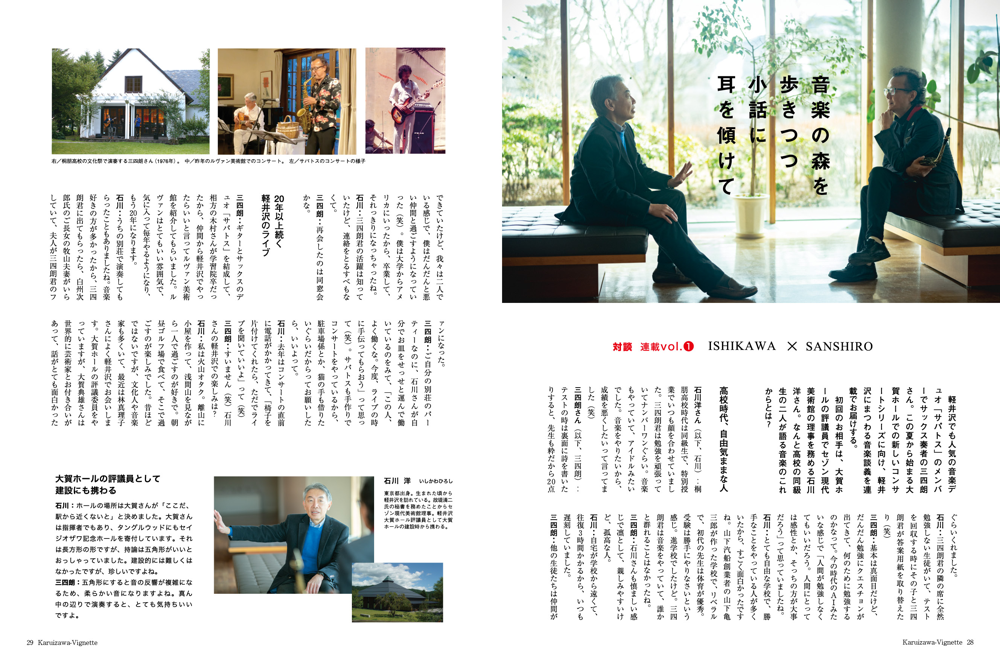 vignette(ヴィネット)は英語で「言葉で描写する」「場面をとらえる」などの意味があります。軽井沢の自然、文化、歴史、別荘ライフの様々なシーンをヴィネットしています。ページをめくると、高原の爽やかな緑の風が薫るような、そんな”高原誌”です。著名人の別荘にお邪魔する「別荘訪問」や「別荘の食卓」など軽井沢の別荘ライフをテーマに軽井沢の衣食住を様々な切り口で紹介しています。