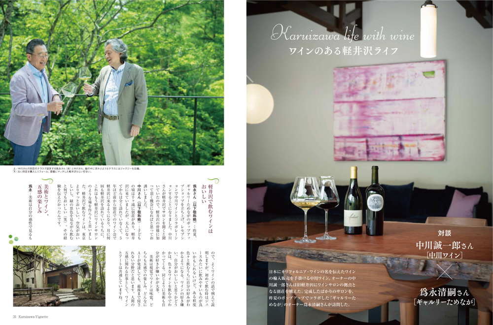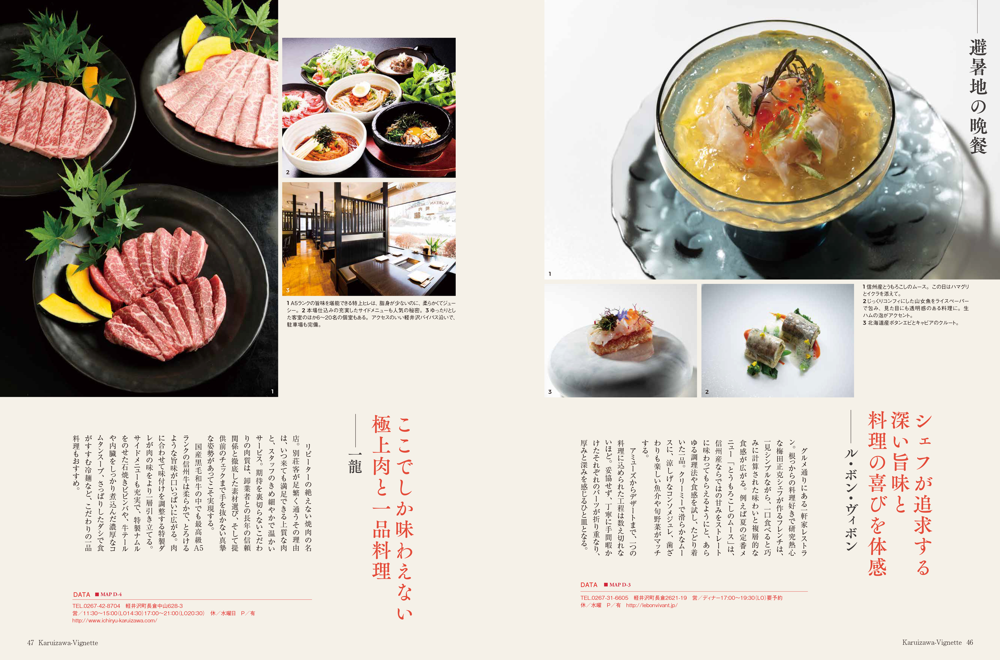 vignette(ヴィネット)は英語で「言葉で描写する」「場面をとらえる」などの意味があります。軽井沢の自然、文化、歴史、別荘ライフの様々なシーンをヴィネットしています。ページをめくると、高原の爽やかな緑の風が薫るような、そんな”高原誌”です。著名人の別荘にお邪魔する「別荘訪問」や「別荘の食卓」など軽井沢の別荘ライフをテーマに軽井沢の衣食住を様々な切り口で紹介しています。
