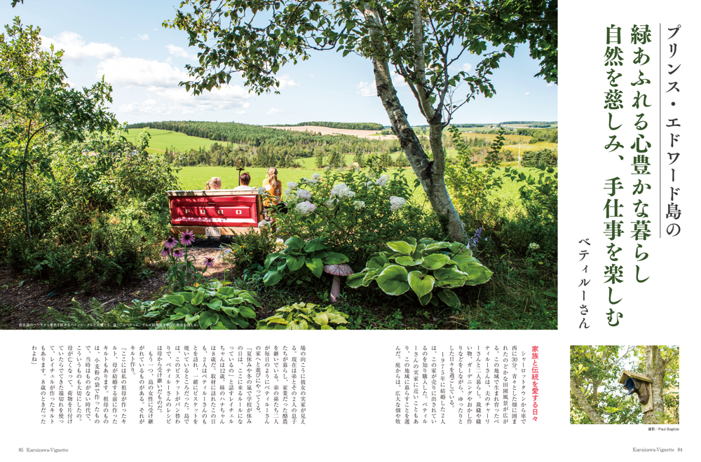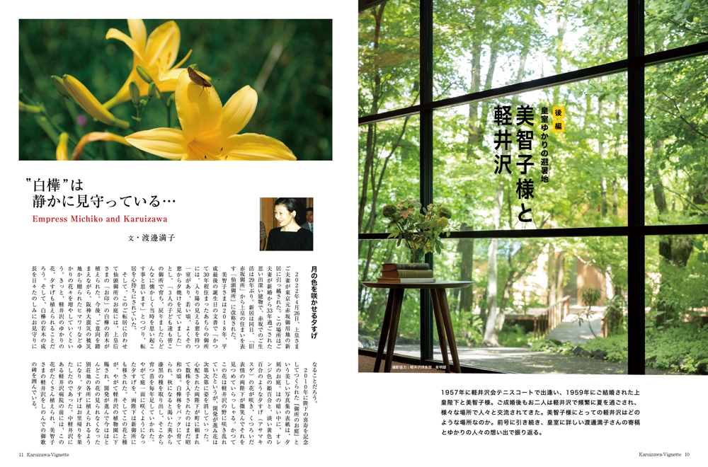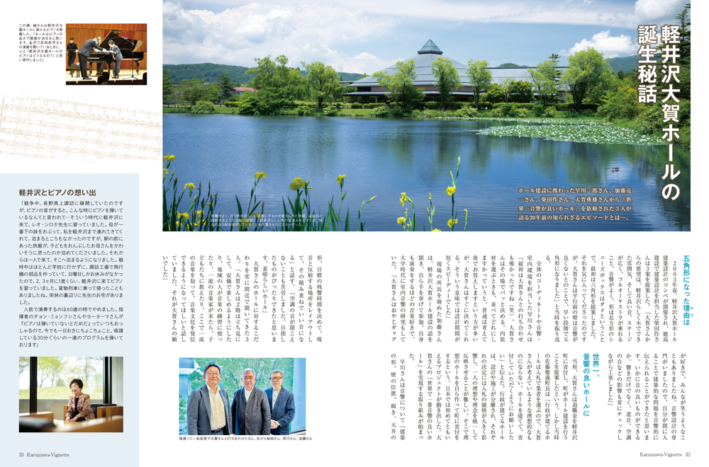 vignette(ヴィネット)は英語で「言葉で描写する」「場面をとらえる」などの意味があります。軽井沢の自然、文化、歴史、別荘ライフの様々なシーンをヴィネットしています。ページをめくると、高原の爽やかな緑の風が薫るような、そんな”高原誌”です。著名人の別荘にお邪魔する「別荘訪問」や「別荘の食卓」など軽井沢の別荘ライフをテーマに軽井沢の衣食住を様々な切り口で紹介しています。