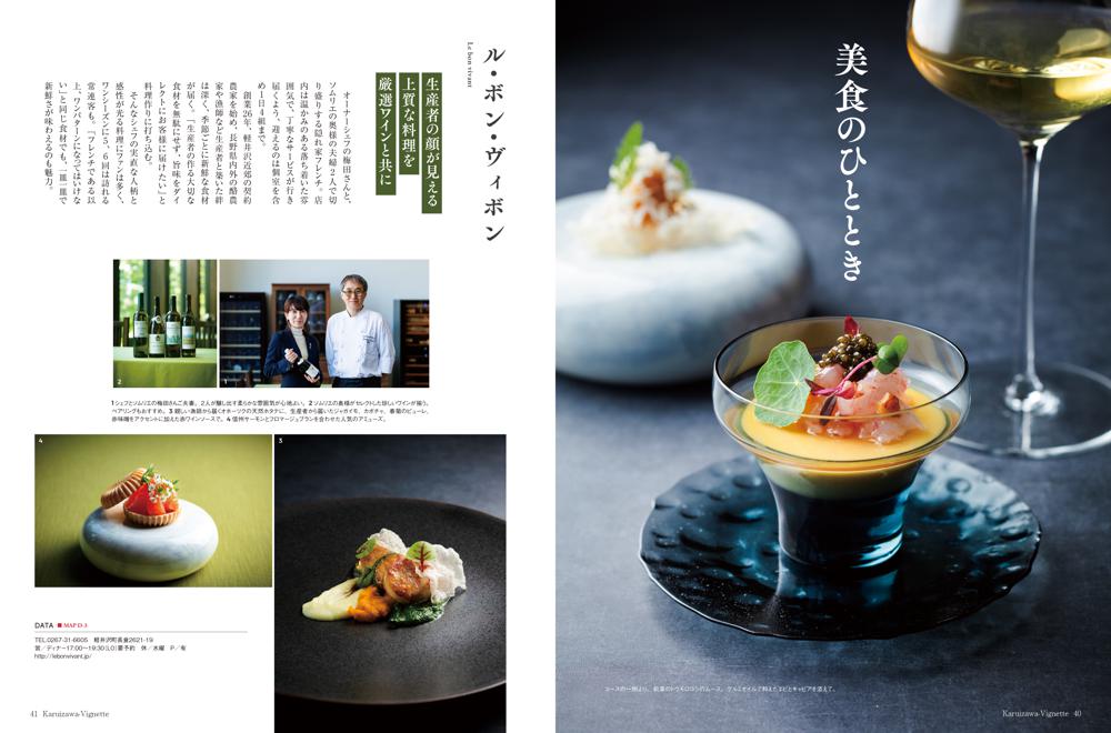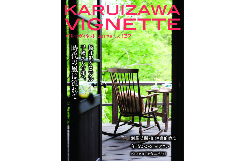 vignette(ヴィネット)は英語で「言葉で描写する」「場面をとらえる」などの意味があります。軽井沢の自然、文化、歴史、別荘ライフの様々なシーンをヴィネットしています。ページをめくると、高原の爽やかな緑の風が薫るような、そんな”高原誌”です。著名人の別荘にお邪魔する「別荘訪問」や「別荘の食卓」など軽井沢の別荘ライフをテーマに軽井沢の衣食住を様々な切り口で紹介しています。