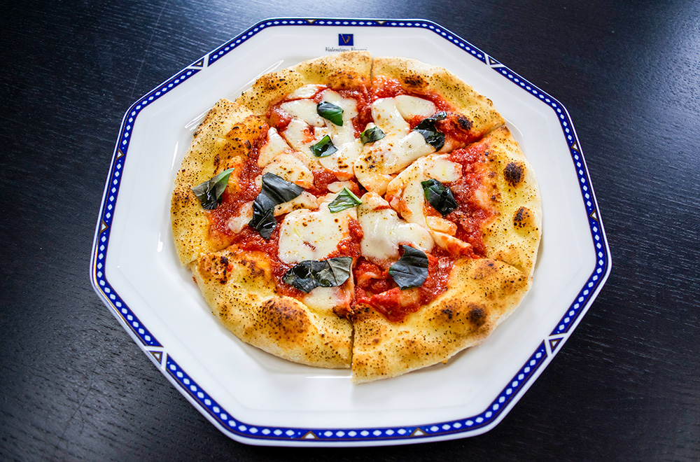 お子さまにも人気のマルゲリータがテイクアウトできます。モチモチの生地にたっぷり乗ったソースは、イタリア産トマト2種類のブレンド。酸味に加え甘みもあります。