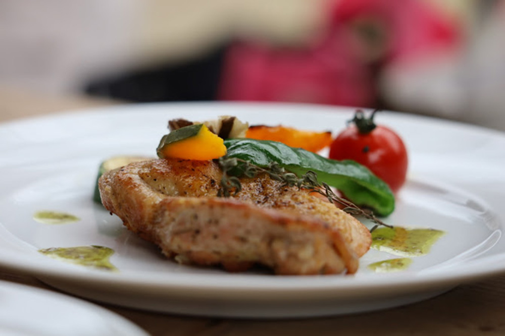 ●赤城鶏モモ肉のやわらか煮ライス 焼き野菜添え:1,250円 ⇒特別価格:900円