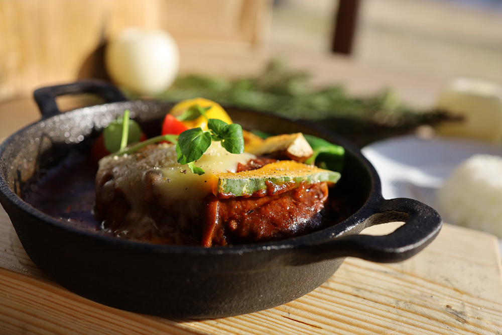 ●赤城牛の煮込みハンバーグ 4種キノコのデミグラスソース(ライス付):1,350円 ⇒特別価格:1,000円